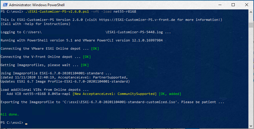 .\ESXi-Customizer-PS-v2.6.0.ps1 -vft -load net55-r8168